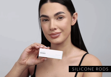First, fit one of the three available sizes of the silicone rods to the eye. If necessary, you can easily trim the edges to ensure the rod adheres to the eyelid better. The silicone used to create our rods ensures excellent adhesion. If necessary, apply some glue underneath the rod so that it adheres to the skin perfectly during the eyelash lift. Then comb your eyelashes onto the rod using the same glue.